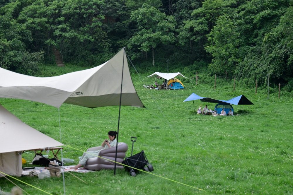 ▲涪陵区大木镇武陵山森林公园,游客们在森林边的草原上露营休息。记者 张春晓 摄/视觉重庆