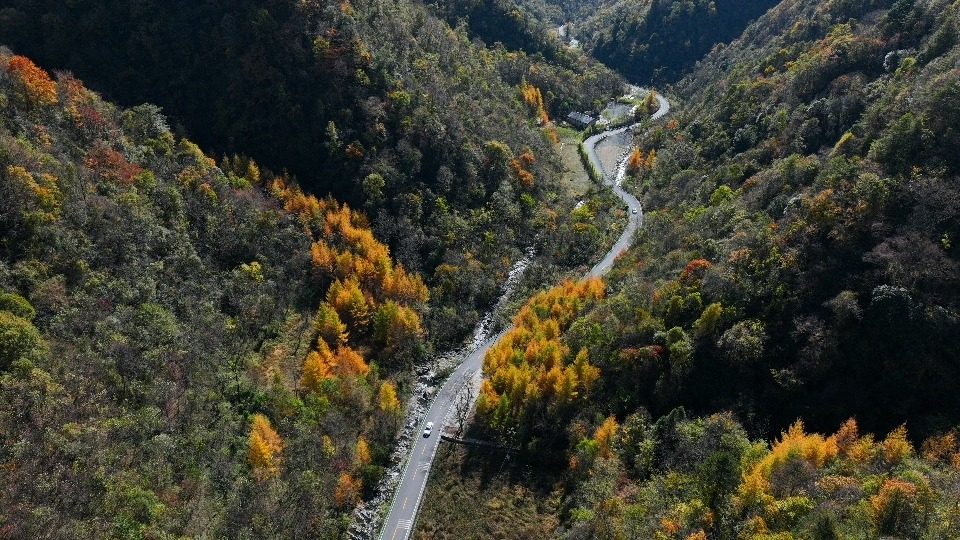 ▲城口县河鱼乡青草坪,自驾游车辆从彩叶林间驶过。(资料图片)记者 张春晓 摄/视觉重庆