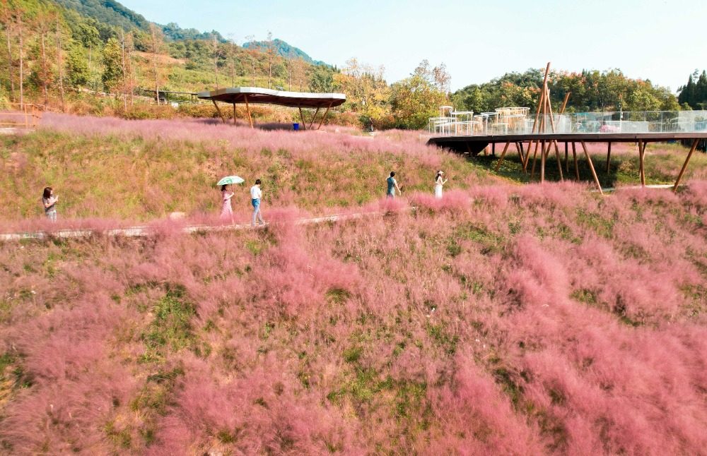 ▲垫江县太平镇恺之峰旅游景区,漂亮的粉黛引来游客观赏。(资料图片)通讯员 龚长浩 摄/视觉重庆
